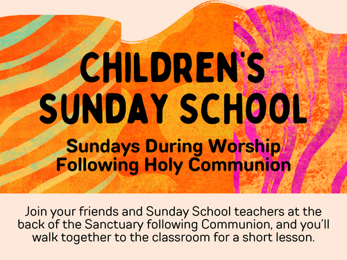 During the school year, our Children's Sunday School meets downstairs in our Children's Classroom (located just off the north end of the Fellowship Hall) for a 20-minute lesson following Holy Communion. After the lesson, children will meet their parents/guardians in the Fellowship Hall during Coffee Hour.